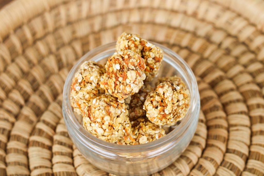 Karotten waschen und fein raspeln / Bananen schälen und mit einer Gabel zu Mus zerdrücken / beides in einer Schüssel gut vermengen / nach und nach die Haferflocken unterrühren, bis die Masse schön fest ist / mit den Händen nochmals gut durchkneten, bei Bedarf noch etwas Haferflocken dazugeben / kleine Kugeln formen und auf ein Backblech setzen / bei 100Grad Umluft ca. 90 Minuten backen / gut auskühlen lassen und weiter 2 Tage an einem kühlen Ort gut durchtrocknen lassen