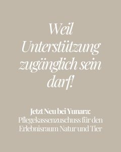 Ab Pflegegrad 1 bis zu 100€ (entspricht zwei Einheiten Erlebnisraum Natur und Tier im Monat fast vollständig über den Zuschuss gedeckt).